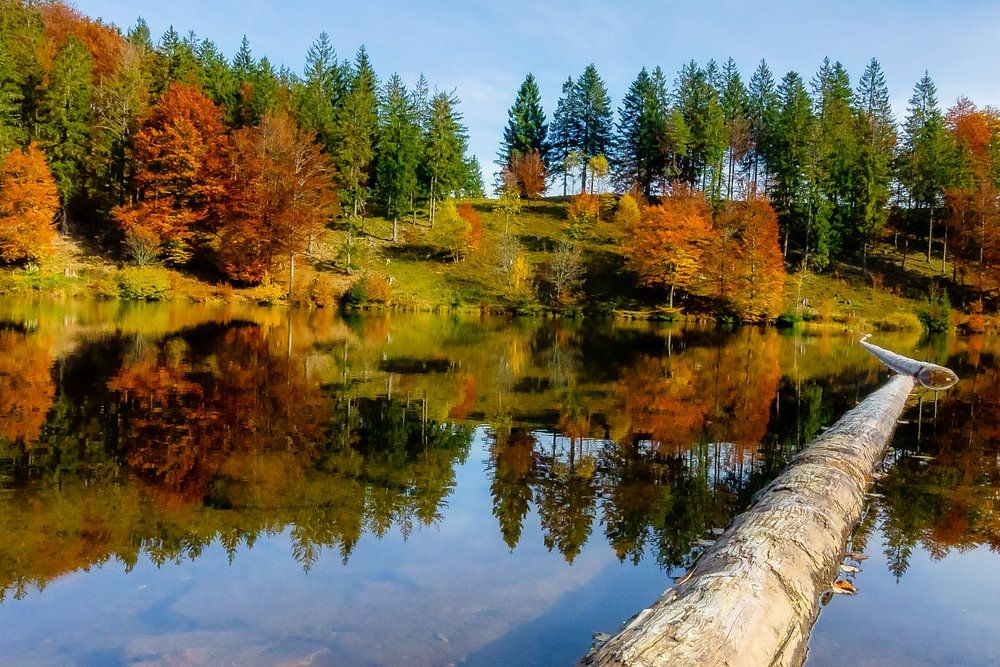 Herbstfarben Spiegelung an einem Bergsee im Schwarzwald