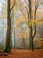 Auch dieses Foto wurde im Speulderbos aufgenommen. Hier sieht man deutlich die tanzenden Bäume. Das wunderschöne Laub hat sich gelb gefärbt. Das sind aber mächtige Stämme. Die Magie des Herbstes mit einem Hauch von Nebel.