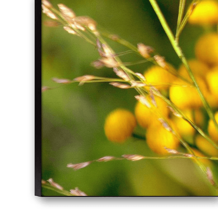 Diese wunderschöne, herbstliche Aufnahme von gelben Wildblüten, und einem prachtvollen Tagpfauenauge im goldenen, warmen Herbstlicht verleiht jedem Wohn- und Arbeitsraum eine angenehm warme, farbenfrohe Stimmung. Dieses Foto entstand mit der Nikon D90 im Botanischen Volkspark in Berlin-Pankow im Oktober 2018.