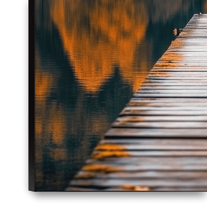 Ein malerischer Steg entfaltet sich, als ob er die Besucher sanft ins Herz eines friedlichen Herbstzaubers einlädt. Die goldenen und orangenen Blätter spiegeln sich im glatten Wasser, während majestätische Tannen im Hintergrund stehen. Eine Atmosphäre der Ruhe und zeitlosen Schönheit umhüllt die Szene, die lädt zum Verweilen und Träumen…