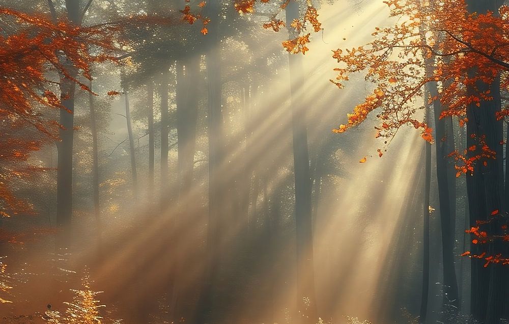 Herbstliche Sonnenstrahlen durch das Blätterdach