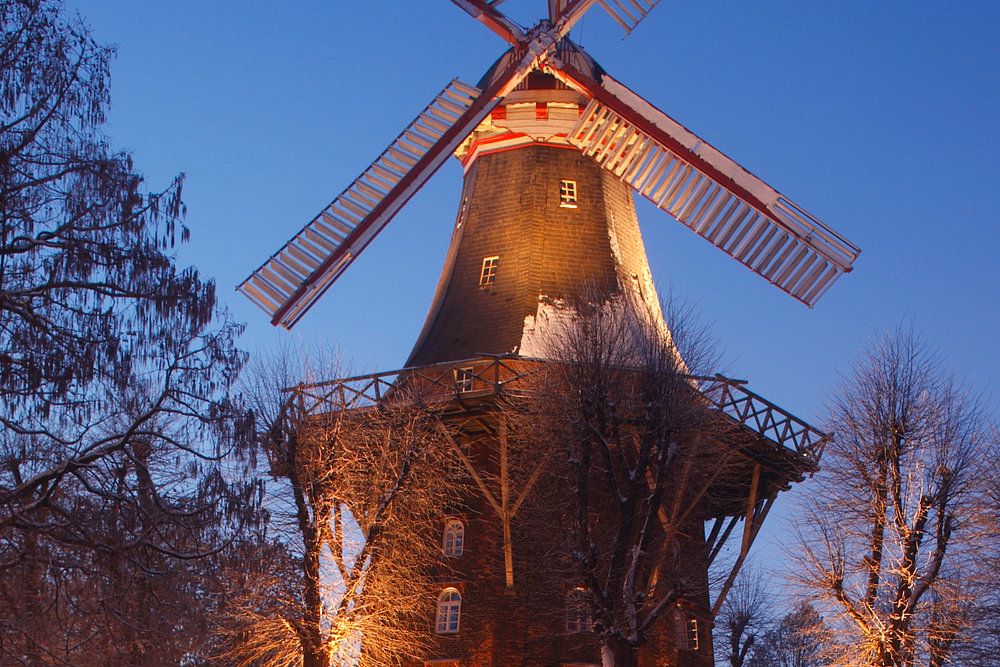 Herdentorswallm�hle in den Wallanlagen mit Schnee bei Abendd�mmerung, Bremen, Deutschland