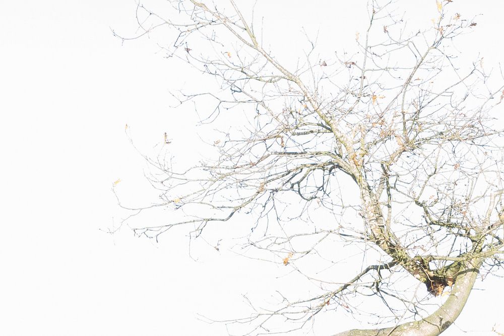 Het is herfst. De bladeren van deze eenzame boom op een zandverstuiving zijn al gevallen.