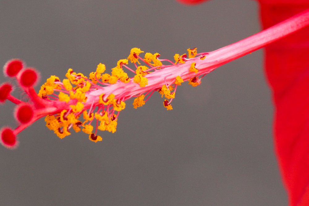 Staubgefäße und Staubbeutel eines Hibiskus auf Fuerteventura