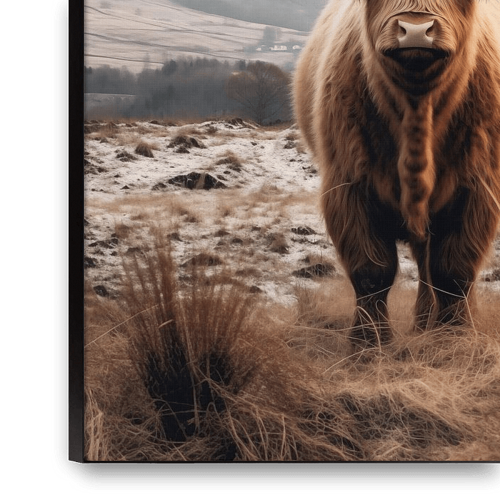 Bestelle dieses Schottische Hochlandrind Wandbild Highland Cow Kuh Schottisch Rind Kühe von Niklas Maximilian als Reproduktion auf Leinwand, Alu-Dibond, als Poster, Fototapete oder Acrylglasbild.
