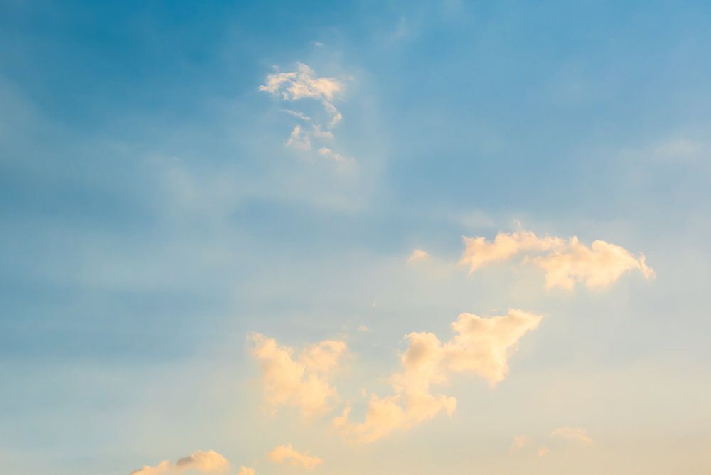Wunderschöner blauer Sommerhimmel mit Wolken im Licht der untergehenden Sonne