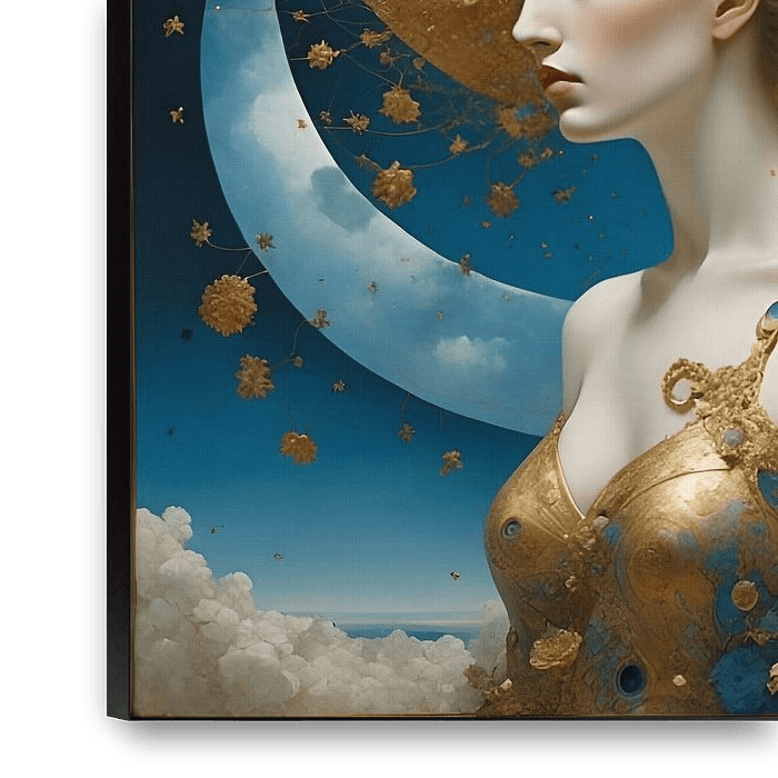 Bestelle dieses Porträt Himmlische Muse - Blau - Porträt von Mellow Art als Reproduktion auf Leinwand, Alu-Dibond, als Poster, Fototapete oder Acrylglasbild.