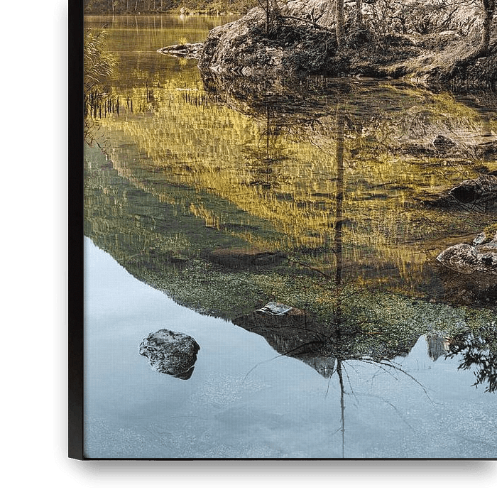 Ihre gewählte Kunst auf Leinwand, gespannt in einem Aluminiumrahmen. Schnell und einfach austauschbar für eine frische Ausstrahlung und ganz nach Ihren Wünschen.