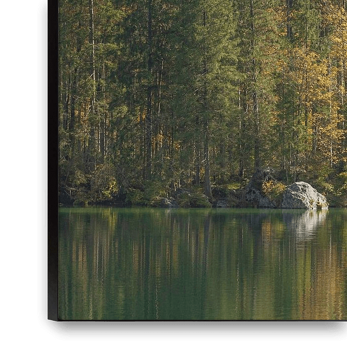 Bestelle das Foto Hintersee mit Wald im Herbst, Ramsau von Torsten Krüger als Reproduktion auf Leinwand, Alu-Dibond, als Poster, Fototapete oder Acrylglasbild.