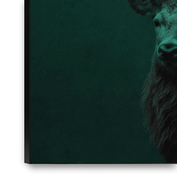 Diese minimalistische digitale Illustration zeigt einen imposanten Hirsch mit majestätischem Geweih vor einem tiefgrünen Hintergrund. Die Komposition unterstreicht die ruhige und doch kraftvolle Natur des Tieres, das stattlich aus der Dunkelheit auftaucht. Die reiche Textur seines Fells und das subtile Lichtspiel im Geweih verstärken…