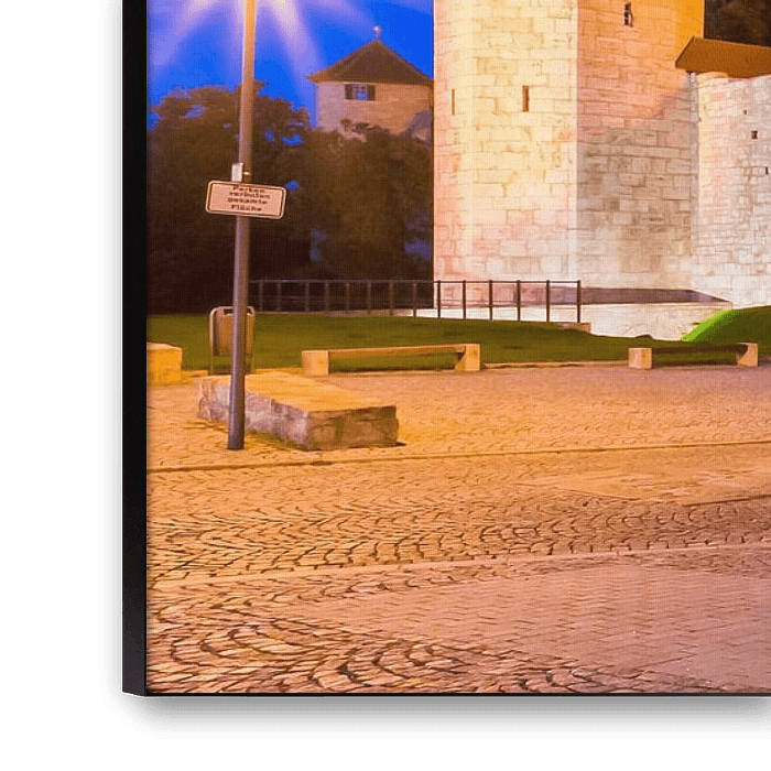 Wehrgang und Stadtmauer in Mühlhausen am Abend, Thüringen, Deutschland.