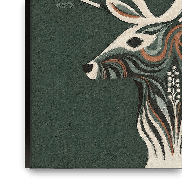 Die Einflüsse der Volkskunst sind in den schönen Details des Hirsches und seines Geweihs zu…
