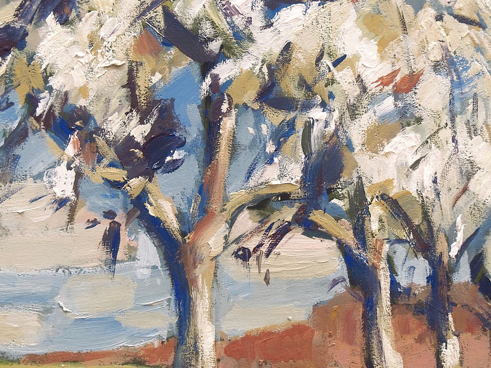 Typische klassische Hochstamm-Obstbäume (Birnen) in der südlimburgischen Landschaft. Qualitätsreproduktionen hier im Werk aan de Muur. Das Originalgemälde steht zum Verkauf: www.briex.eu