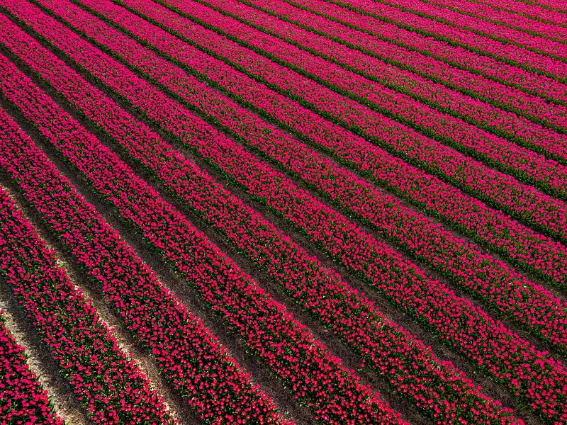 Bestelle dieses Landschafts-Wandbild Holländisches Tulpenfeld von Bas van der Gronde als Reproduktion auf Leinwand, Alu-Dibond, als Poster, Fototapete oder Acrylglasbild.
