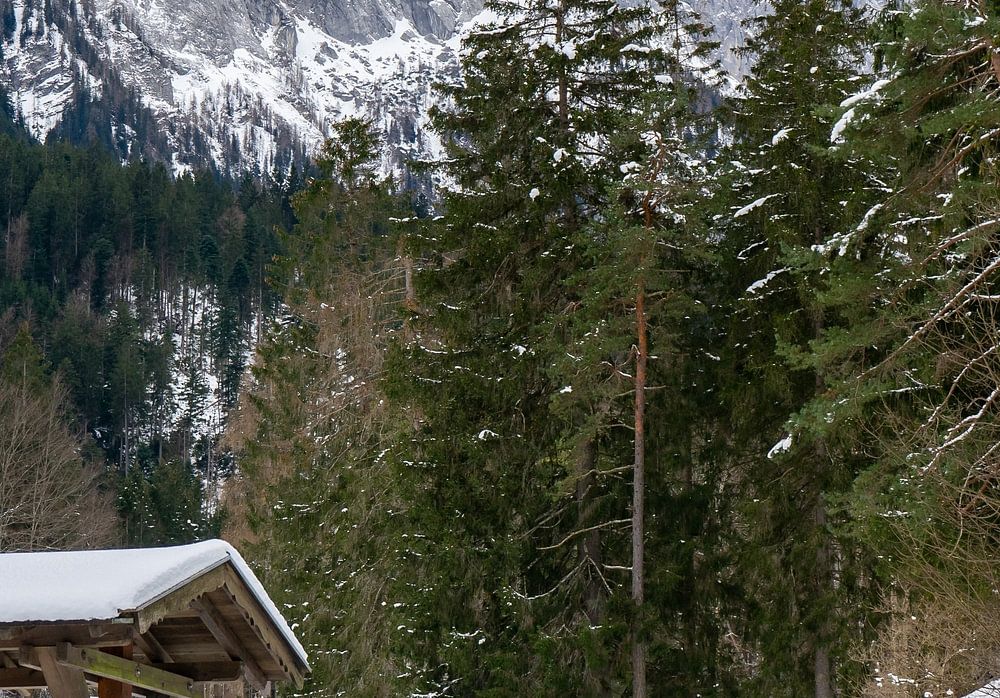 Holzhütte in den Bergen an der Zugspitze in den Alpen
