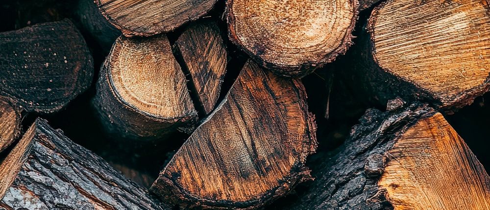 Ein harmonisches Zusammenspiel von warmen Brauntönen und rustikalen Texturen entfaltet sich in diesem faszinierenden Arrangement von Kaminholz. Die natürliche Unregelmäßigkeit der Baumstämme verleiht jedem Raum einen Hauch von Gemütlichkeit und Naturverbundenheit. Ideal für ein Wohnzimmer oder eine ländliche Küche, wo es die Atmosphäre von Behaglichkeit und Wärme steigert.