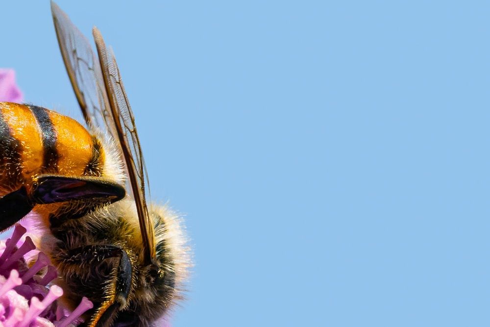 Westliche Honigbiene auf einer Acker-Witwenblume.