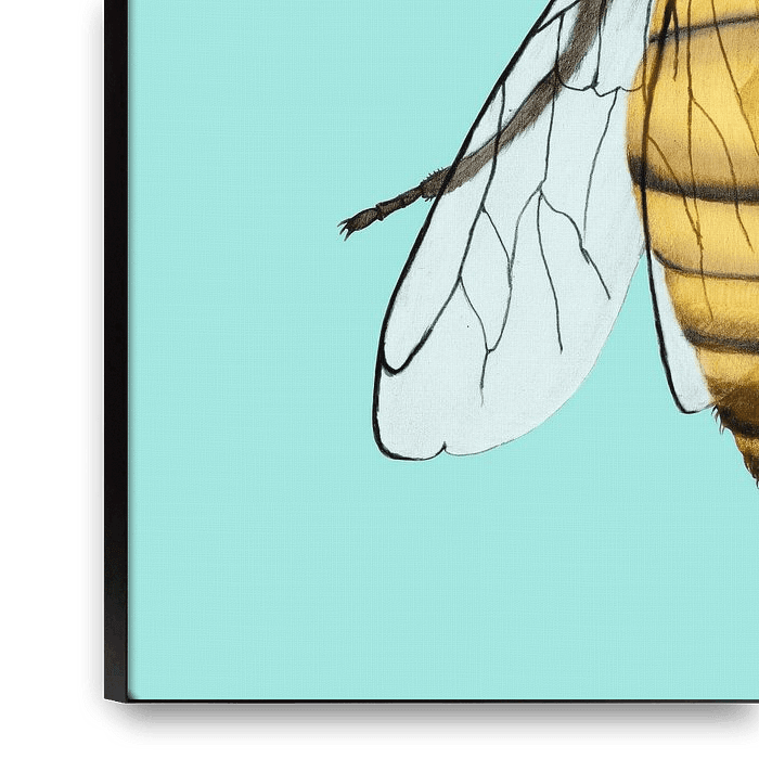 Eine Bleistiftzeichnung einer Honigbiene. Digital eingestellt und gefärbt und auf einen Türkishintergrund für einen netten Farbkontrast gelegt.