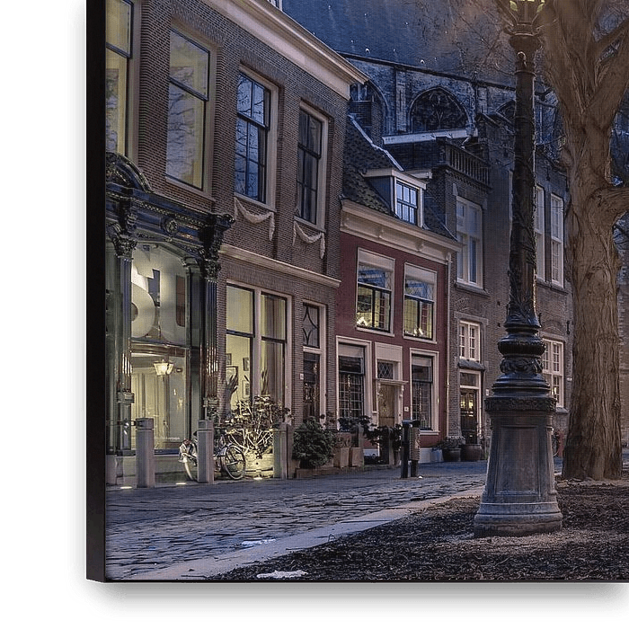 Die Hooglandse Kerkgracht während der blauen Stunde