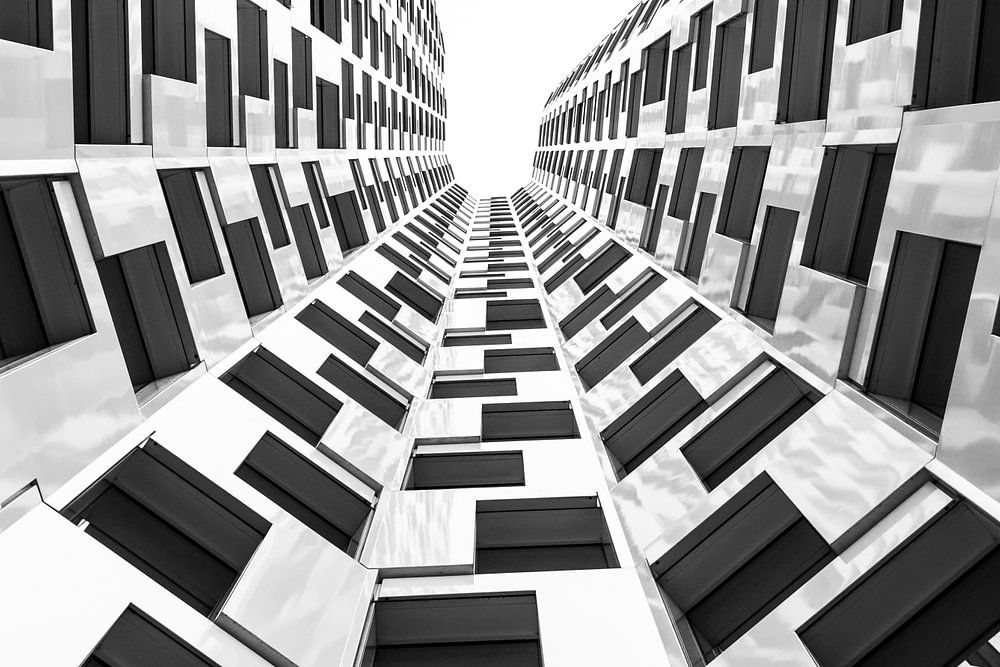 Abstrakte Ansicht des Berliner Hotels Motel One in der Kanstraße in Berlin.