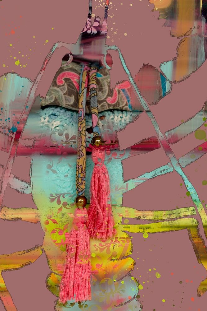 Der Hintergrund ist ein dunkles Altrosa mit Farbspritzern darüber.