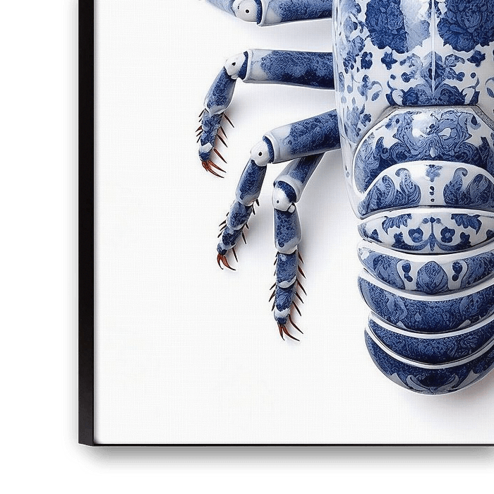 Klassischer Hummer aus originellem blauen Porzellan auf weißem Grund. Holländischer Stil.
