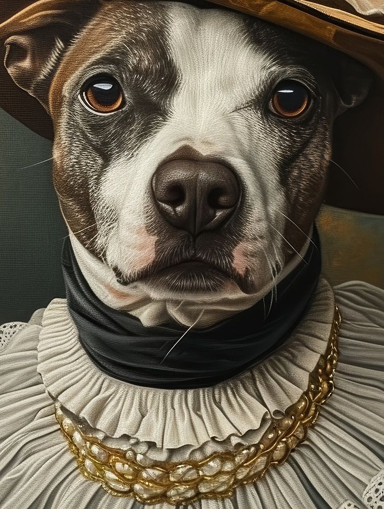Lord Barkington, ein stolzer Dackel mit einem stattlichen Schnauzbart, führte die Gruppe mit würdevollem Auftreten an. Er trug einen spitzenbesetzten Kragen und eine maßgeschneiderte Jacke, die seine stattliche Erscheinung unterstrich. Neben ihm schritt Lady Pawsbury, ein eleganter Pudel, der ein fein gestricktes Kleid und eine glitzernde Halskette trug, die ihren Hals wie ein kostbares Juwel schmückte.