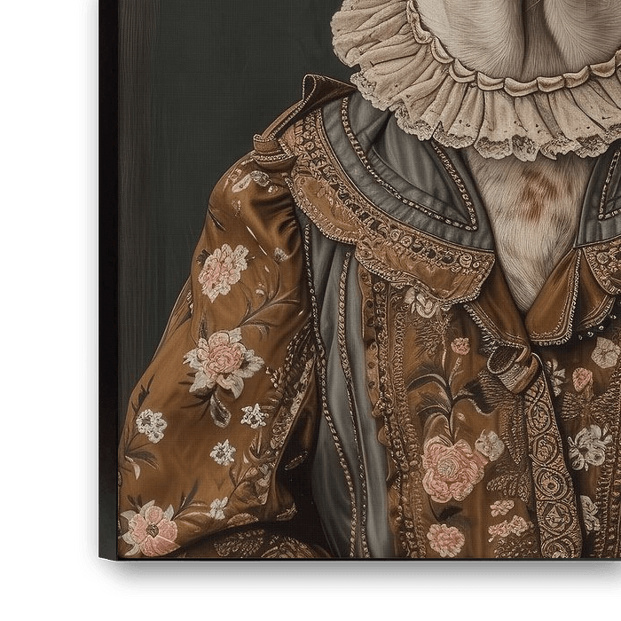 Lord Barkington, ein stolzer Dackel mit einem stattlichen Schnauzbart, führte die Gruppe mit würdevollem Auftreten an. Er trug einen spitzenbesetzten Kragen und eine maßgeschneiderte Jacke, die seine stattliche Erscheinung unterstrich. Neben ihm schritt Lady Pawsbury, ein eleganter Pudel, der ein fein gestricktes Kleid und eine glitzernde Halskette trug, die ihren Hals wie ein kostbares Juwel schmückte.