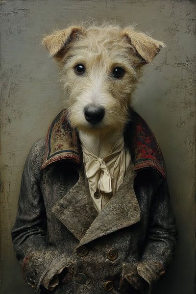 Bestelle dieses Porträt Hundeporträt Alte Meister - Der rebellische Reporter von Joriali Fine Art als Reproduktion auf Leinwand, Alu-Dibond, als Poster, Fototapete oder Acrylglasbild.