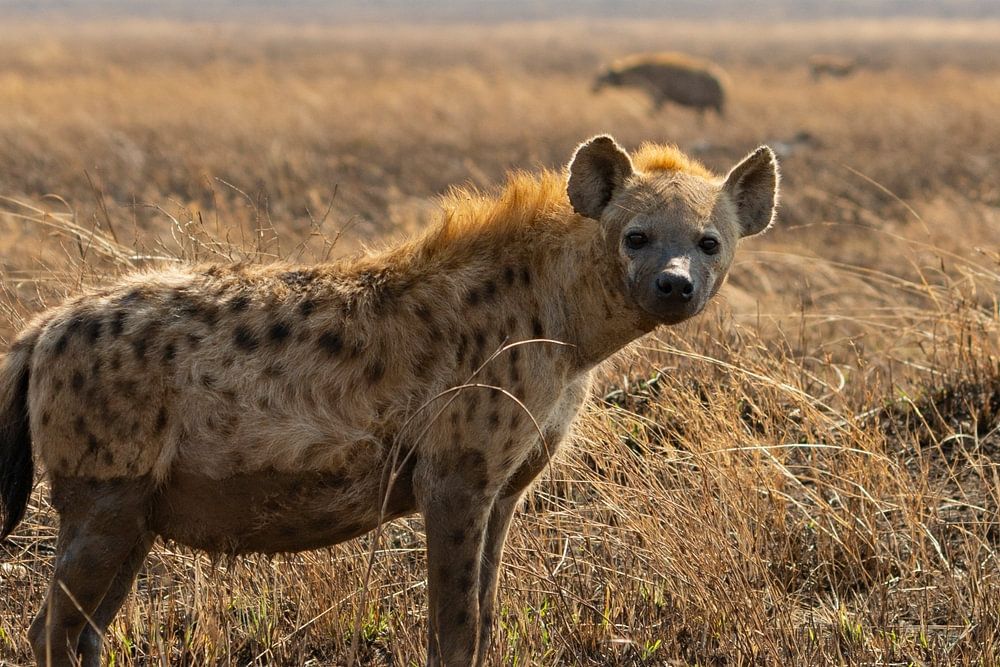 Hyäne auf den offenen Ebenen der Serengeti in Tansania.
