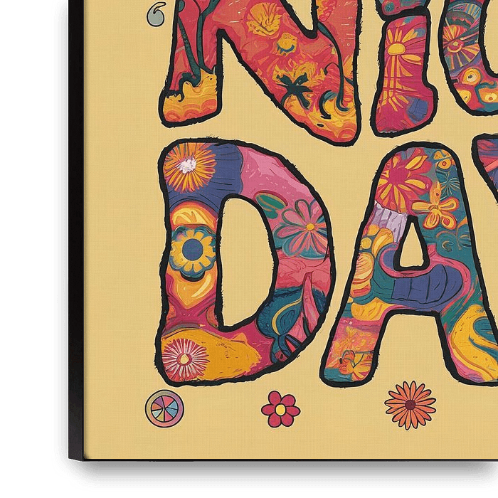 Ein illustriertes Plakat im klassischen Flower-Power-Design aus den 70er Jahren mit dem Text "Have a nice day" umgeben von Blumen.