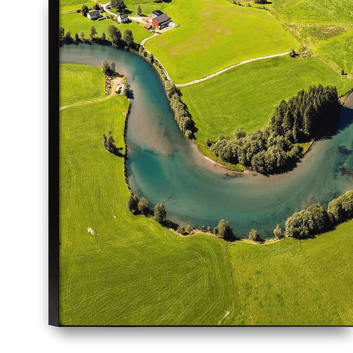 Bestelle dieses Landschafts-Wandbild Idyllischer Lauf des Flusses Stryneelva in Norwegen von Achim Thomae Photography als Reproduktion auf Leinwand, Alu-Dibond, als Poster, Fototapete oder Acrylglasbild.