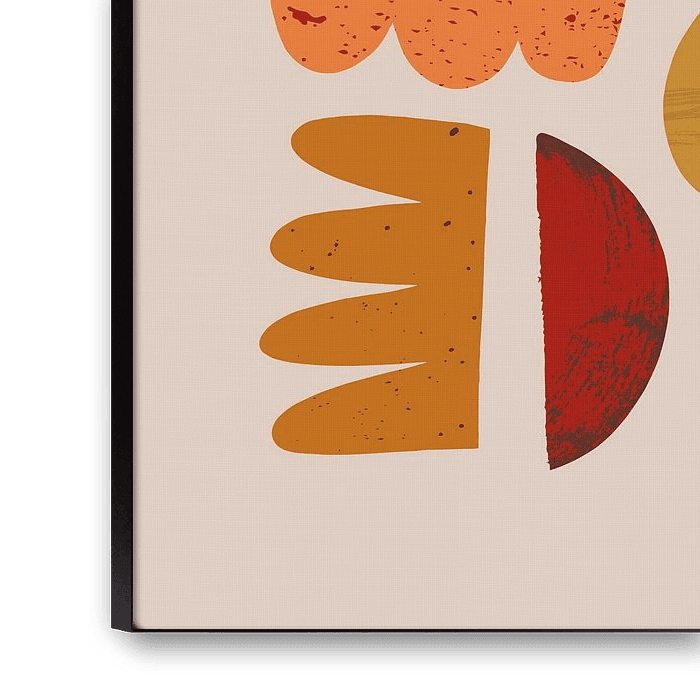 Illustration moderne abstrakte in warmen Farben vor einem neutralen, beige Hintergrund. Acht organische Formen verbinden sich zu einer spielerischen und ausgewogenen Komposition.