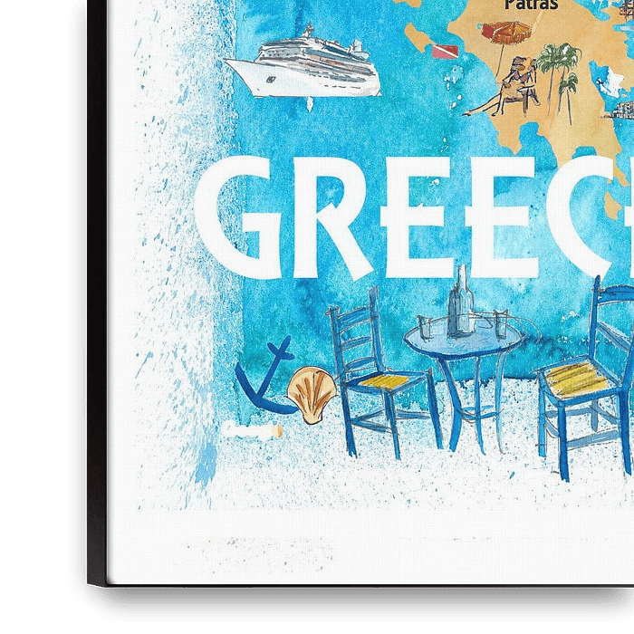 Illustrierte Reisekarte für Griechenland mit Sehenswürdigkeiten und Highlights