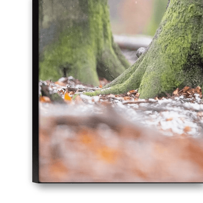 Irgendwo auf der Veluwe, in einem alten Buchenwald, liegen noch Schneereste auf dem Boden. Der weiße Schnee bildet einen schönen Kontrast zu den rot/orangen Buchenblättern und dem grünen Moos auf den dicken Baumstämmen. Wenn ein Wildschwein erscheint, sind alle Zutaten für ein schönes, stimmungsvolles Foto vorhanden. Wie schön die Natur ist!