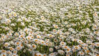 Vollbildaufnahme mit üppig blühenden Gänseblümchen. Das Foto wurde am Ende der Frühjahrssaison in einer niederländischen Gärtnerei auf der ehemaligen Insel Tholen, Provinz Zeeland, aufgenommen.