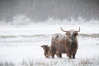 Bestelle dieses Schottische Hochlandrind Wandbild In der Nähe der Mutter bleiben von Laura Vink als Reproduktion auf Leinwand, Alu-Dibond, als Poster, Fototapete oder Acrylglasbild.