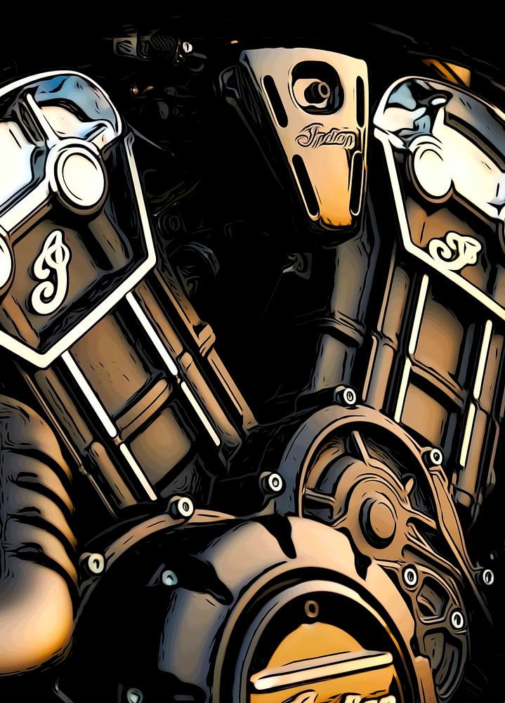 Eine wunderschöne VIPART-Kreation eines Motorblocks von einem Indian Motorcycle Scout Bobber. Wirklich einzigartiges Kunstwerk mit einer schönen Anzeige von großen Retro-Stil und moderne Technologie.