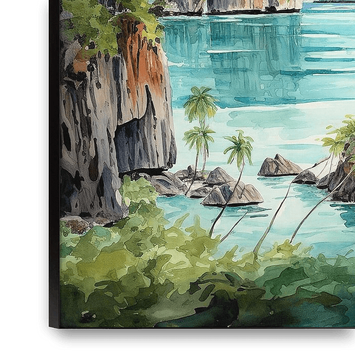 Ihre gewählte Kunst auf Leinwand, gespannt in einem Aluminiumrahmen. Schnell und einfach austauschbar für eine frische Ausstrahlung und ganz nach Ihren Wünschen.