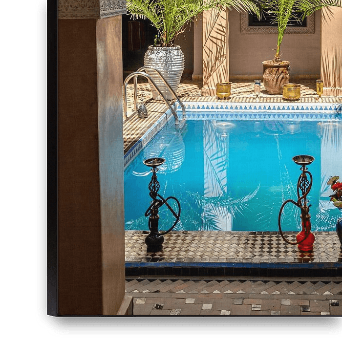 Bestelle das Foto Innenhof Riad in Marrakesch von Dieter Walther als Kunstdruck auf Leinwand, Alu-Dibond, als Poster, Fototapete oder Acrylglasbild.