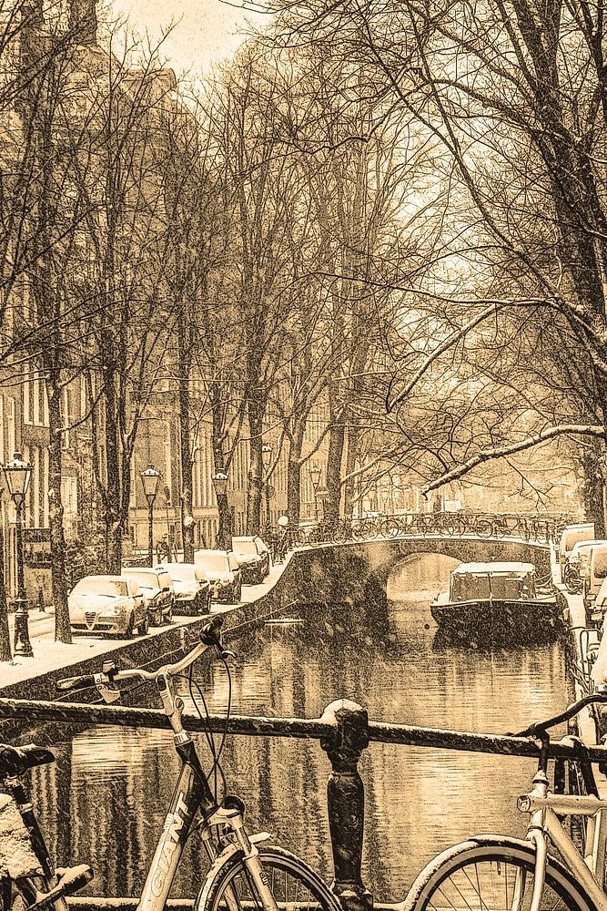 Es schneit in Amsterdam. Es ist kalt und glitschig. Ein heftiger Wind weht durch die Straßen und Kanäle. Den meisten Touristen ist es warm ums Herz.