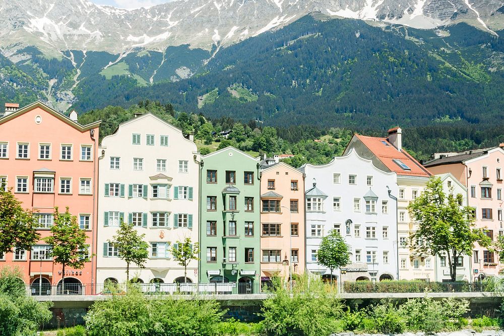 Innsbruck ist die Hauptstadt von Tirol. Häuser in der ganzen Stadt haben schöne Farben. Es ist ein beliebtes Ziel für Wintersportler im Winter und Wanderer im Sommer.