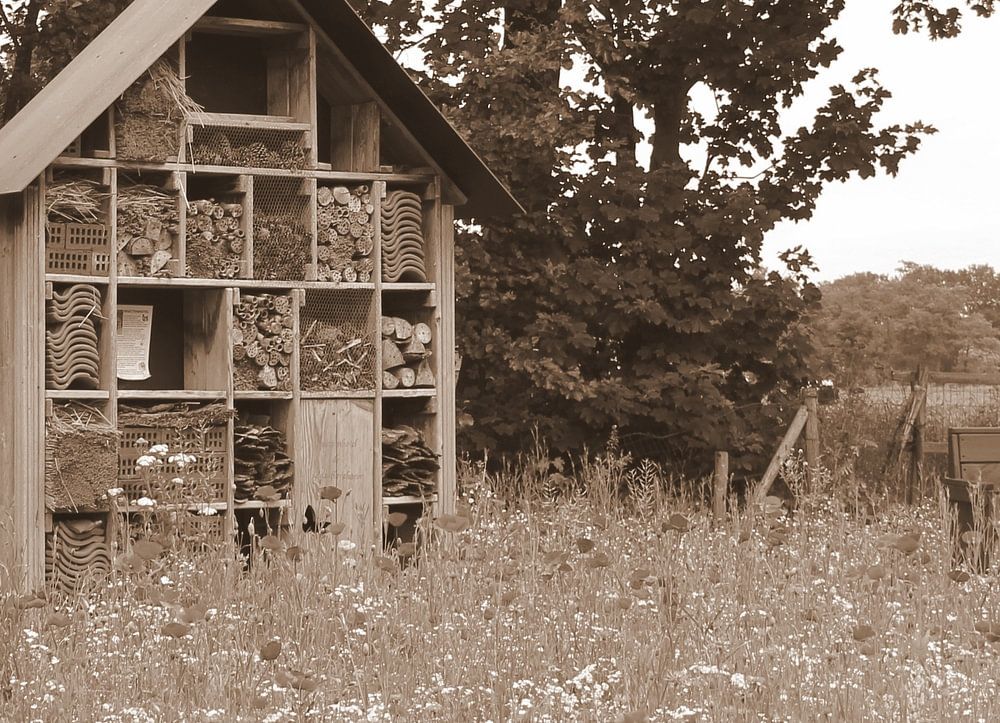 Obst- und Gemüsebauern errichten manchmal eine Insektenwand, um Bestäuber anzulocken. Quelle: wikipedia