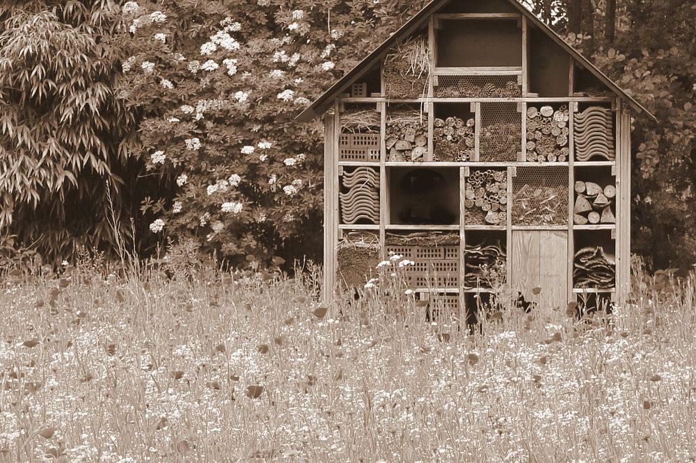 Ein speziell konstruierter Insektenschutzraum dient oft sowohl ökologischen als auch umweltpädagogischen Zwecken. Insektenhotels aus verschiedenen Materialien findet man häufig in botanischen Gärten, ökologischen Gärten und Umweltbildungszentren. Insektenhotels sind in der Regel für die Überwinterung von Insekten gedacht. Marienkäfer und Schmetterlinge, aber auch Solitärbienen und Wespen nutzen sie besonders.