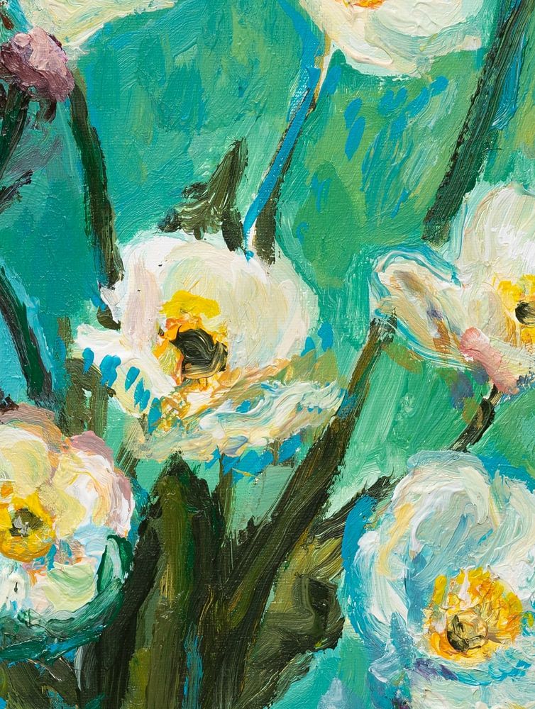 Ein Foto des Stilllebens "Inspiriert von van Gogh" von der niederländischen Malerin Tanja Koelemij gemacht. Van Gogh ist, wie für viele andere Künstler auch, eines von Koelemijs großen Vorbildern. Sie geht auf seine großartige Verwendung von Farbe und sichtbaren Pinselstrichen ein.