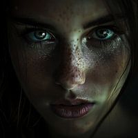 Dieses beeindruckende Porträt einer Frau zieht den Betrachter mit ihrem intensiven, durchdringenden Blick sofort in den Bann. Die Nahaufnahme zeigt jede Sommersprosse und jede Textur ihrer Haut, was dem Bild eine rohe und authentische Tiefe verleiht. Ideal für Liebhaber von Porträts und Fotokunst, die den Ausdruck und die Emotionen im…
