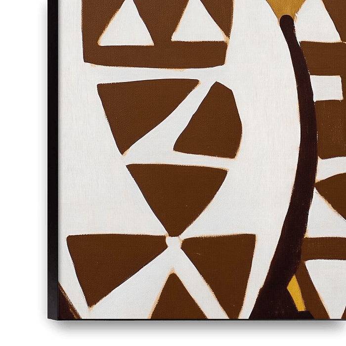 Dieses lebhafte Acrylgemälde zeigt ein Paar traditioneller afrikanisch inspirierter Vasen, die mit komplizierten geometrischen Mustern und Erdtönen verziert sind. Form und Dekoration der Vasen sind eine Hommage an das reiche kulturelle Erbe Afrikas und zelebrieren die Schönheit und Vielfalt der afrikanischen Kunst. Das rhythmische…