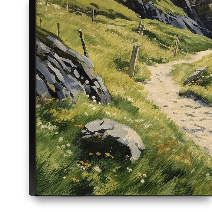 Ihre gewählte Kunst auf Leinwand, gespannt in einem Aluminiumrahmen. Schnell und einfach austauschbar für eine frische Ausstrahlung und ganz nach Ihren Wünschen.