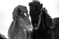 2 Kameraden (Islandpferde) posieren während eines kalten Winters in Island.