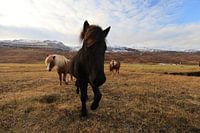 Bestelle das Foto Islandpferde auf einer Wiese von Frank Fichtmüller als Kunstdruck auf Leinwand, Alu-Dibond, als Poster, Fototapete oder Acrylglasbild.